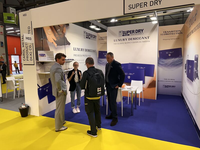 作为深耕防霉防潮领域二十多年的供应商,我们始终密切关注包装行业客户的防潮防霉需求。展会期间,SUPER DRY欧洲团队代表Dominik Kasserra先生与现场专业观众展开交流,共同探讨了当前包装环节中的防潮防霉技术难点及未来发展趋势。