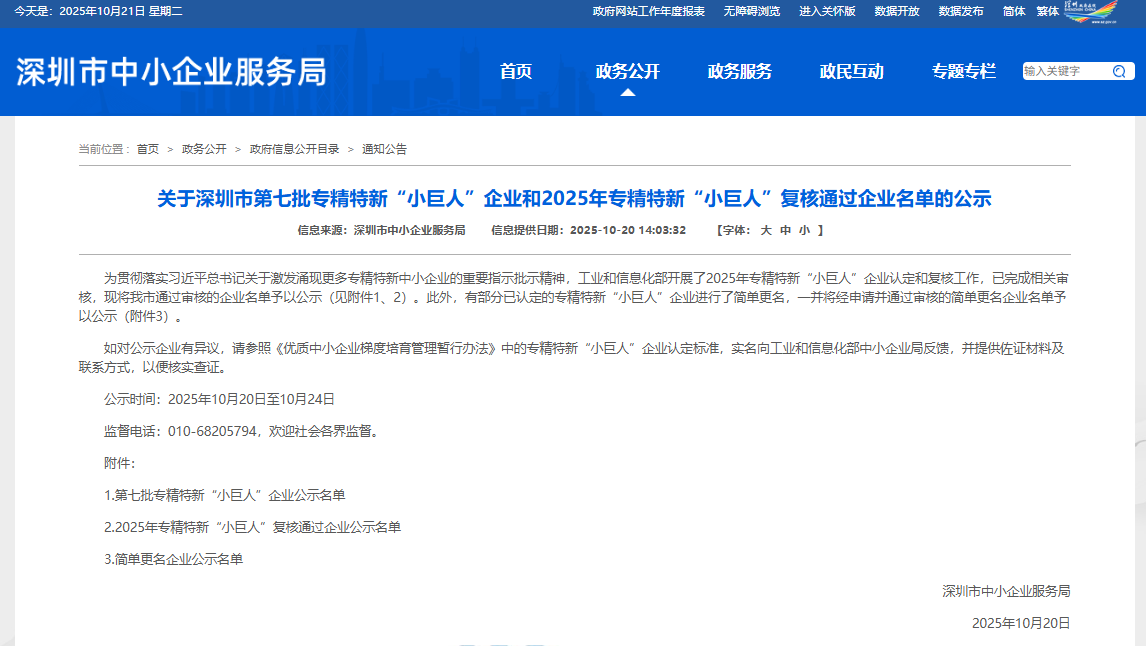 10月20日,工业和信息化部重磅揭晓第七批国家级专精特新“小巨人”企业认定名单。干霸干燥剂(深圳)有限公司凭借深厚的技术积累、持续的创新能力与领先的市场地位,成功入选,成为干燥剂行业首家获此国家级认定的企业!