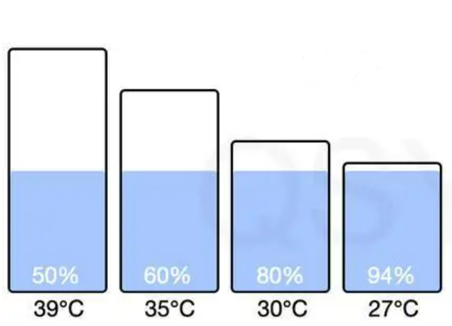 在大气压不变的条件下,空气中水蒸气的含量是随着温度不同而变化的,温度越高可容纳的水蒸气越多,温度越低可容纳的水蒸气越少。如果我们把一定气压和温度下的空气比作一个空杯子的话,那么温度越高,这个装空气的杯子的容量就会越大。
