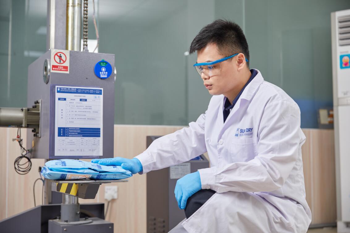 货物在搬动或者运输过程中,由于挤压、扭动可能会使干燥剂受到拉伸。如果干燥剂包装材料没有很好的拉伸强度,就会有很大的破包可能性。