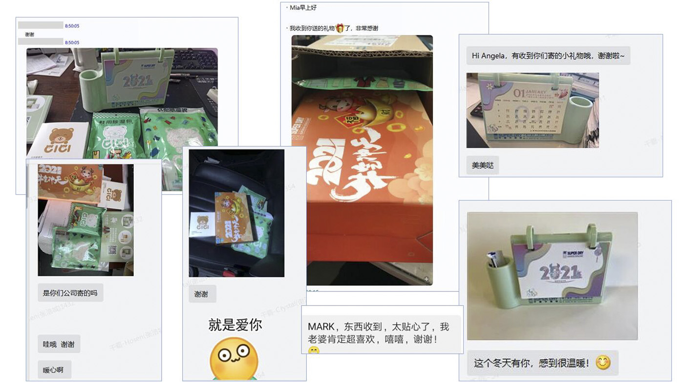 今年,始料未及的疫情,让世界各地的人们都有更多的时间被迫宅在家里与家人呆在一起,人们更加关注居家生活,注重优雅生活环境的塑造,良好家庭氛围的营造。我们收到反馈,我们客户在日常生活中也有受到潮湿、物品发霉的困扰,因此我们推出了家居日用系列产品,并且在跨年之际给所有老客户寄出了跨年礼包——台历及家用防潮防霉产品。跨年礼包受到客户的一致好评。